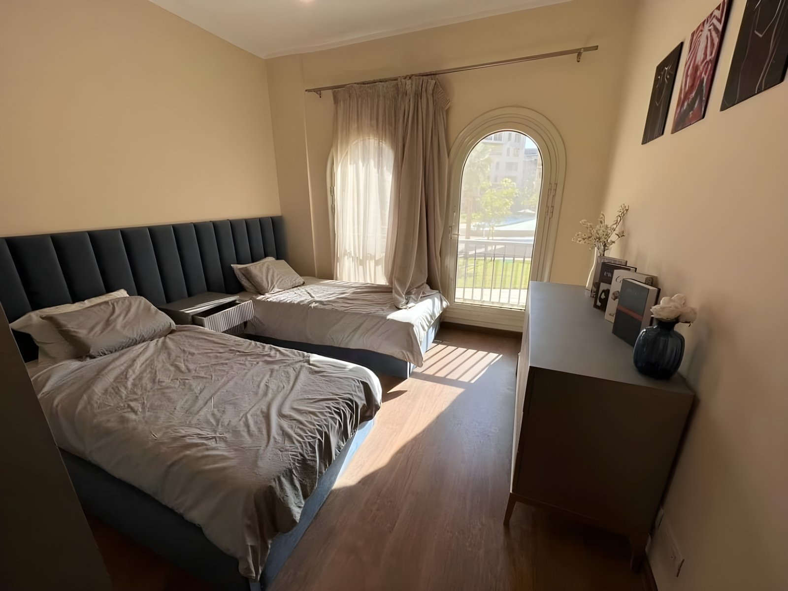 A fully finished ultra-super-luxury apartment located in the prestigious 90 Avenue Compound, directly in front of the American University in Cairo (AUC), overlooking the main 90th Street in Fifth Settlement. The apartment features a wide open view of the landscape, 2 bedrooms, 2 bathrooms, and comes fully air-conditioned with high-end finishing.